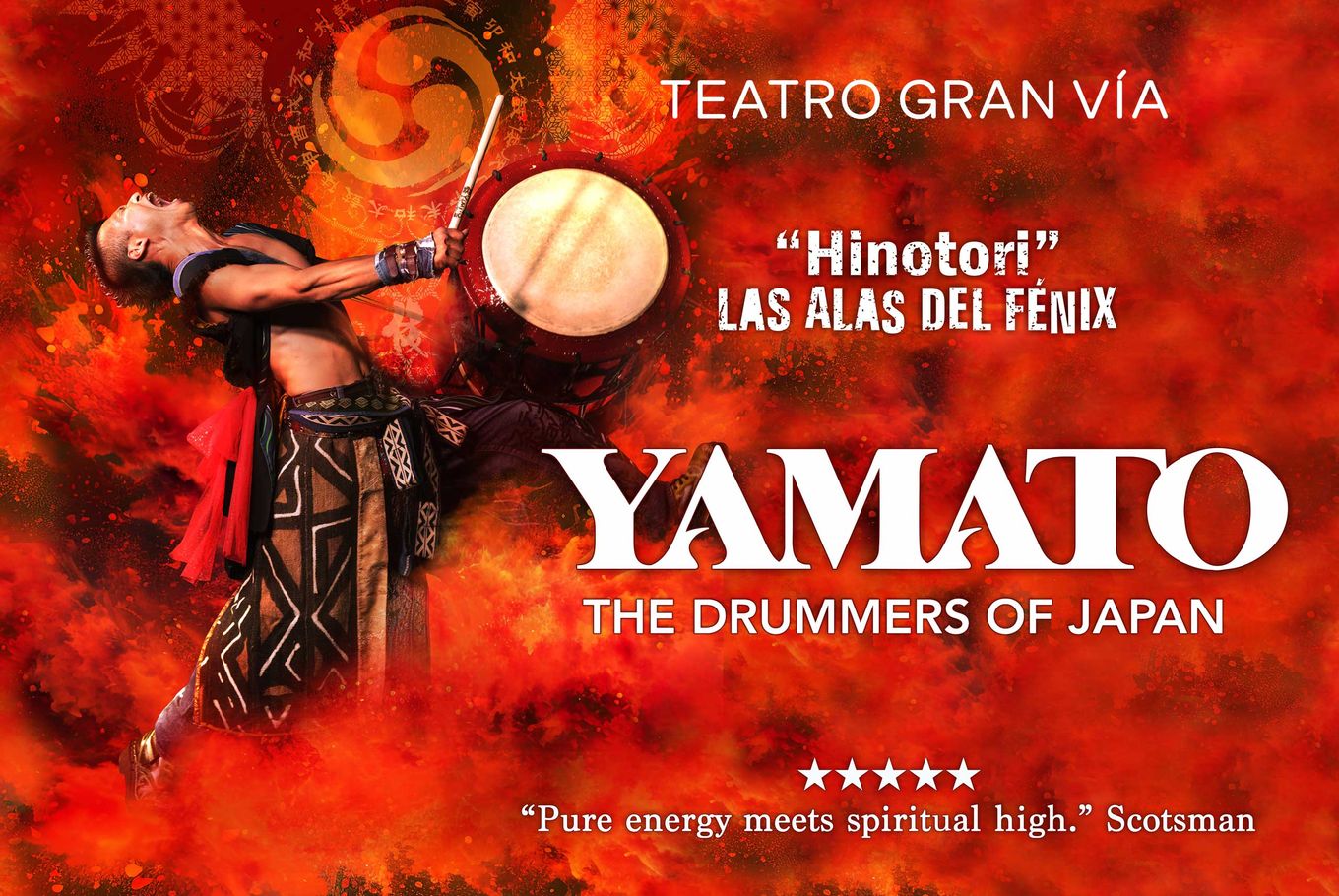 Yamato, The drummers of Japan el grupo japonés de tambores de taiko presenta Hinotori, Las alas del Fénix en el Teatre Apolo de Barcelona. Energía, pasión y espiritualidad de la tradición japonesa del grupo de músicos que ha recorrido más de 54 países, logrando captar la atención del público mundial a través de su maestría en la percusión. Una experiencia única sobre el destino y la conexión humana a través de la música.