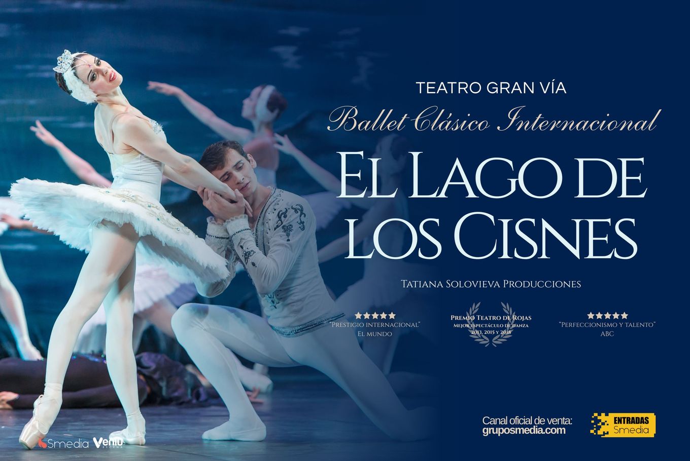 El Ballet Clásico Internacional presenta, El lago de los cisnes, una propuesta artística de Tatiana Solovieva Producciones, un clásico de la danza con tres galardones al Mejor Espectáculo de Danza en el Teatro Apolo de Barcelona. Una impresionante escenografía y bailarines de renombre mundial, formando un equipo durante décadas de trabajo conjunto para conseguir el máximo nivel de excelencia artística, entrega y superación.