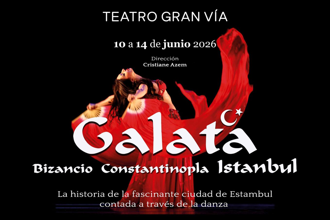 Tras cautivar a miles de espectadores en escenarios nacionales e internacionales, el espectáculo Galata, creado y dirigido por Cristiane Azem, vuelve a Madrid. Una fusión de danza, historia y música que transporta al público desde Bizancio hasta el Estambul contemporáneo.