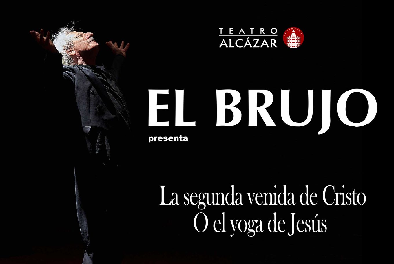 El Brujo vuelve al Teatro Alcázar con su nuevo espectáculo "La segunda venida de Cristo o el yoga de Jesús". Medalla de Oro al Mérito de las Bellas Artes 2002 entre otras distinciones, Rafael Álvarez, El Brujo posee una trayectoria de más de 50 años de experiencia sobre las tablas y afirma que este espectáculo es el título más arriesgado de toda su carrera en teatro, un ingenioso monólogo con grandes toques de humor.
